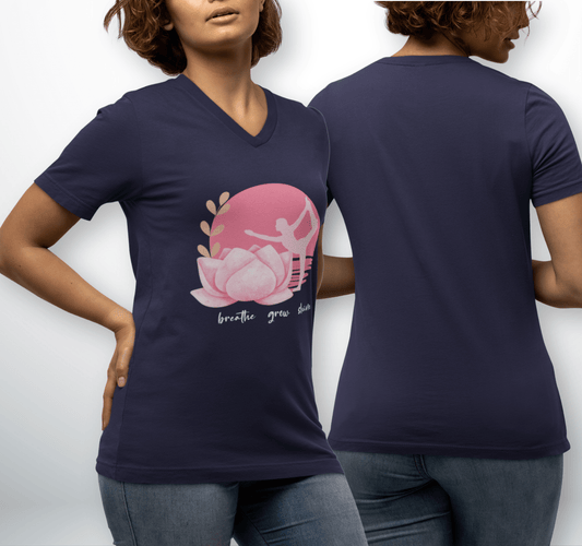 Breathe Grow Shine Moon Floral V-neck T-shirt Yoga Wellness for Women