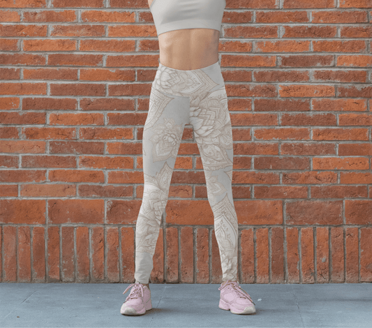 Cream Mandala Yoga Pants Leggings