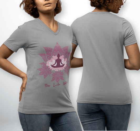 Flow Like Water Mandala V-neck T-shirt Yoga Wellness for Women