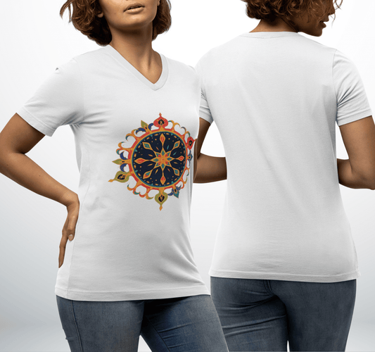 Harmony Mandala V-neck T-shirt Yoga Wellness for Women