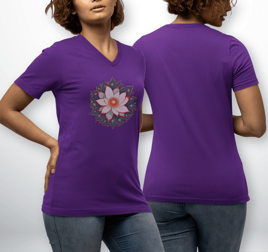 Reflect Floral Mandala V-neck T-shirt Yoga Wellness for Women
