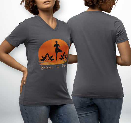 Moon Balance is Power V-neck T-shirt Yoga Wellness for Women