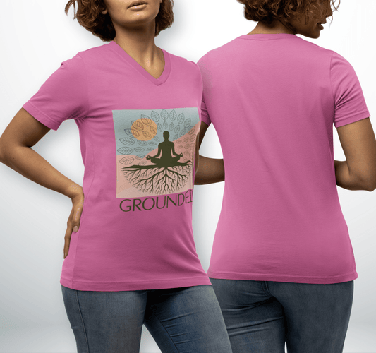 Grounded Leaf V-neck T-shirt Yoga Wellness for Women